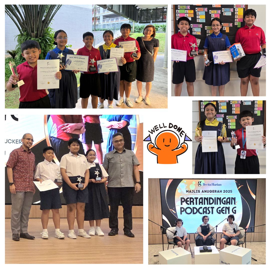 Our Malay Language students shone brightly this year through a range of competitions that celebrated their creativity, teamwork and passion for the language. In the Piala Tun Sri Lanang poetry recitation competition, they impressed with expressive video entries, earning both a second place award and a Most Creative Video accolade. In the Berita Harian Podcast competition, our students shared thoughtful hopes for SG100, with one student recognised as the Best Podcaster for primary schools.